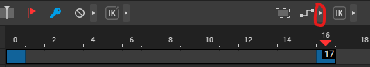 베지어 클램프 보간이 적용된 프레임은 타임라인에서 청록색으로 색상이 지정됩니다.