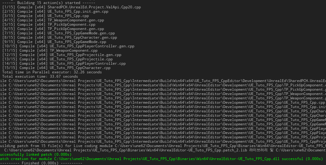 유니티에서는 코드 수정사항이 바로바로 반영되고, 길더라도 10초 정도 기다렸던 기억인데...